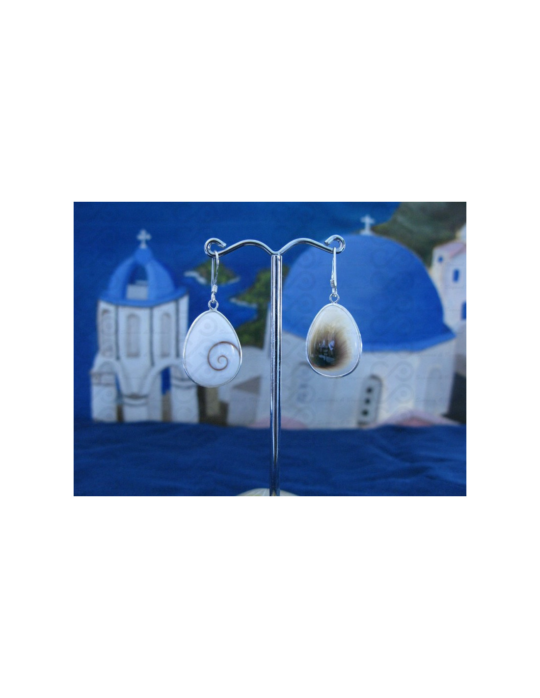 Le ofrecemos la joyería de plata hecha usando una cáscara del operculum que una vez pulida se convierta en una joya magnífica, extraordinaria en un lado de la cáscara del ojo de Shiva es una espiral hermosa. El color varía de color beige a verde intenso, dependiendo de la dieta del caracol, mientras que el fondo siempre sigue siendo un blanco lechoso. También conocido como ojo Shiva, se considera en todo el mundo para ser un encanto de la suerte.