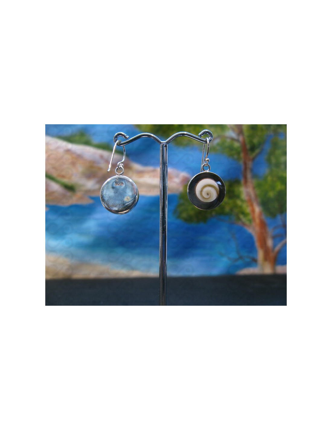 Nós oferecemos-lhe jóias de prata feitas usando um escudo de operculum que uma vez polido se torna uma excelente jóia extraordinária de um lado do escudo de olho de Shiva é uma espiral bonita. A cor varia de bege a verde profundo, dependendo da dieta do caracol do mar, enquanto o fundo sempre permanece um branco leitoso. Também conhecido como olho Shiva, é considerado em todo o mundo como um charme de sorte.