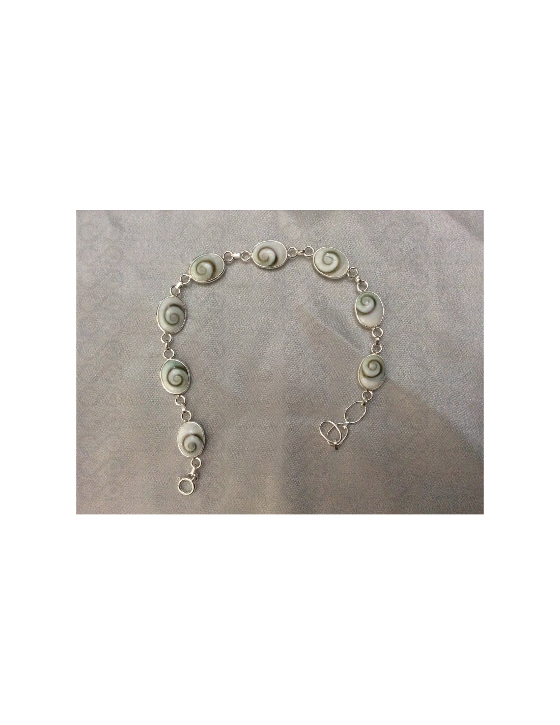 Nós oferecemos-lhe jóias de prata feitas usando um escudo de operculum que uma vez polido se torna uma excelente jóia extraordinária de um lado do escudo de olho de Shiva é uma espiral bonita. A cor varia de bege a verde profundo, dependendo da dieta do caracol do mar, enquanto o fundo sempre permanece um branco leitoso. Também conhecido como olho Shiva, é considerado em todo o mundo como um charme de sorte.